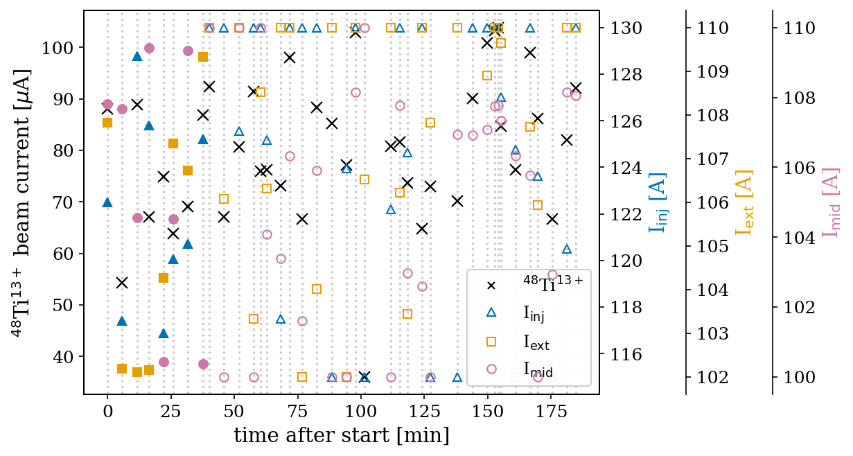 A central focus of the computer optimization was VENUS’ magnetic field operational range. This space is vast and tedious for humans to explore as typical superconductor coil current changes take minutes to complete. Setting the limitlessly-patient computer loose on the task led to it discovering a previously-unused operational field that resulted in a nearly 25% increase in titanium beam current compared to our typical (human-found) operation point, as can be seen in Figure 2.